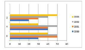 The following bar graph indicates the production of cement by 3 companies X,Y and Z during the years 2000-2003. The quantity is in lakh bags. Study the bar graph carefully and answer the question.