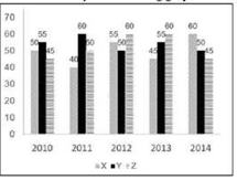 The graph shows the production of tyres (in lakhs) by three different companies X, Y and Z over the years.