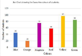 The bar chart shows the favourite colour of 380 students in a class. Study the bar chart and answer the questions based on it.