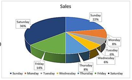 The sale of tickets (in 1000s) in days of a week is given in the pie chart.