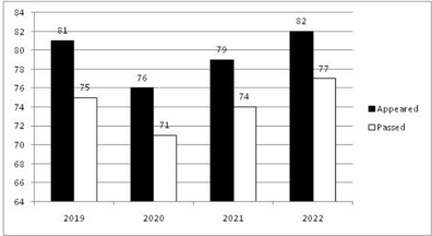 In which year is the percentage of students passed with respect to students appeared the highest?