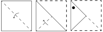 A sqaure sheet of paper is folded along the dotted line successfully along the directions shown and is then punched in the last. How would the paper look when unfolded?