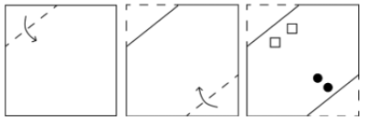 A square sheet of paper is folded along the dotted line successively along the directions shown and is then punched in the last. How would the paper look when unfolded?
