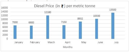 What is the percentage increase in the price of Diesel from April to July (rounded off to one digit after decimal)?