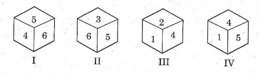 பின்வரும் பகடைகளின் தோற்றத்திலிருந்து ‘2'க்கு எதிரில் வரும் எண் எது ?
