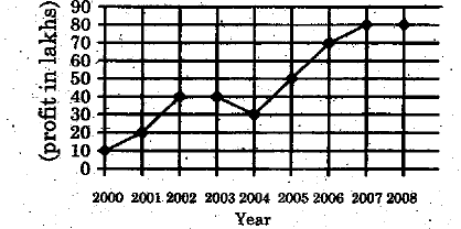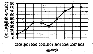 கீழ்கண்ட வரைபடத்திலிருந்து 2004ம் ஆண்டிலிருந்து 2005ம் ஆண்டிற்கு கிடைத்த இலாபத்தின் உயர்வினை சதவீதத்தில் காண்க .